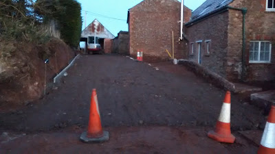 Work is due to start on the barn development this coming April and due to the need for a link to the new water supply we had to run a series of pipes along the drive. Whilst we are digging it makes sense to resurface/hard landscape and clean up anything else we might want to do in the future regards piping for power and water. We had local company R W Gale coming to help us, and to make things clear from the beginning, we prepped the site with some marker paint: